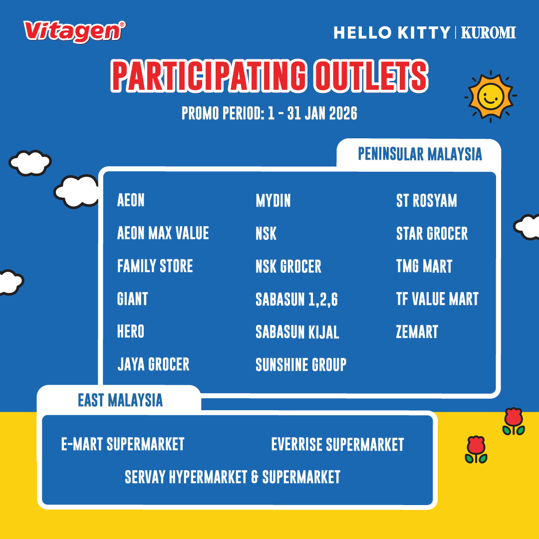 Get a free Hello Kitty & Kuromi XL Tote Bag when you purchase 3 packs of Vitagen online or at selected outlets between 1 to 31 Jan 2026!